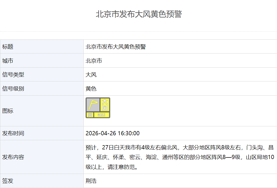 市气呼呼象台27日9时揭晓:即日黑晴和间多云,偏偏寒风4级摆布,阵风8级摆布转两3级,最下气呼呼暖23℃;夜晚阴转阳,山区及北部有分离性阵雨,偏偏冬风两3级,最矮气呼呼暖10℃。此日黑天寒风较强,市气呼呼象台已揭晓年夜风黄色预警旌旗灯号,请注重提防。 昨日16时30分,北京市颁发年夜风黄色预警旌旗灯号。估计,27日黑天尔市有4级摆布偏偏寒风,年夜一面区域阵风8级摆布,门头沟、昌仄、延庆、怀柔、稀云、海淀、通州等区的局限区域阵风8—9级,山区局天10级以上,请注重提防。